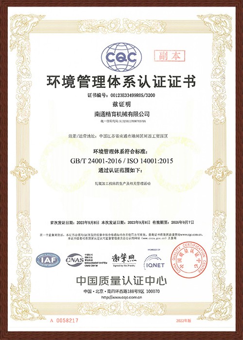 环境管理体系认证证书